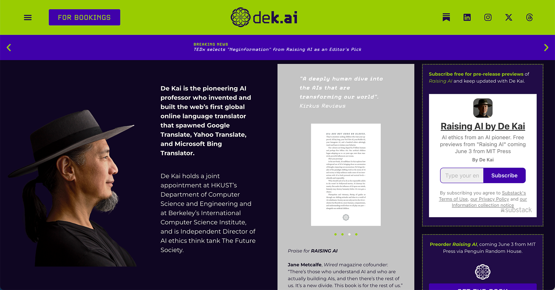 Visual Identity Creation for AI Statesman and Professor DeKai, and Website creation at www.dek.ai